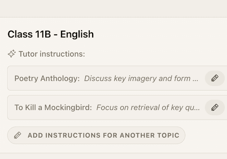 Teachers direct how Inkling tutors their students - setting focus topics, aligning to this week's lessons, and adjusting the tutor's approach. Inkling extends what your teachers do, it doesn't replace them. And it generates zero extra marking or admin.